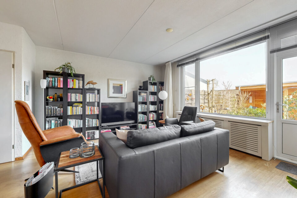Via de entree/hal betreedt u de woning. Hier bevinden zich de meterkast en de toiletruimte, uitgevoerd met een hangend toilet en fonteintje. Vanuit de hal bereikt u de lichte woonkamer. Deze beschikt over een praktische trapkast en biedt voldoende ruimte voor een zit- en eetgedeelte.