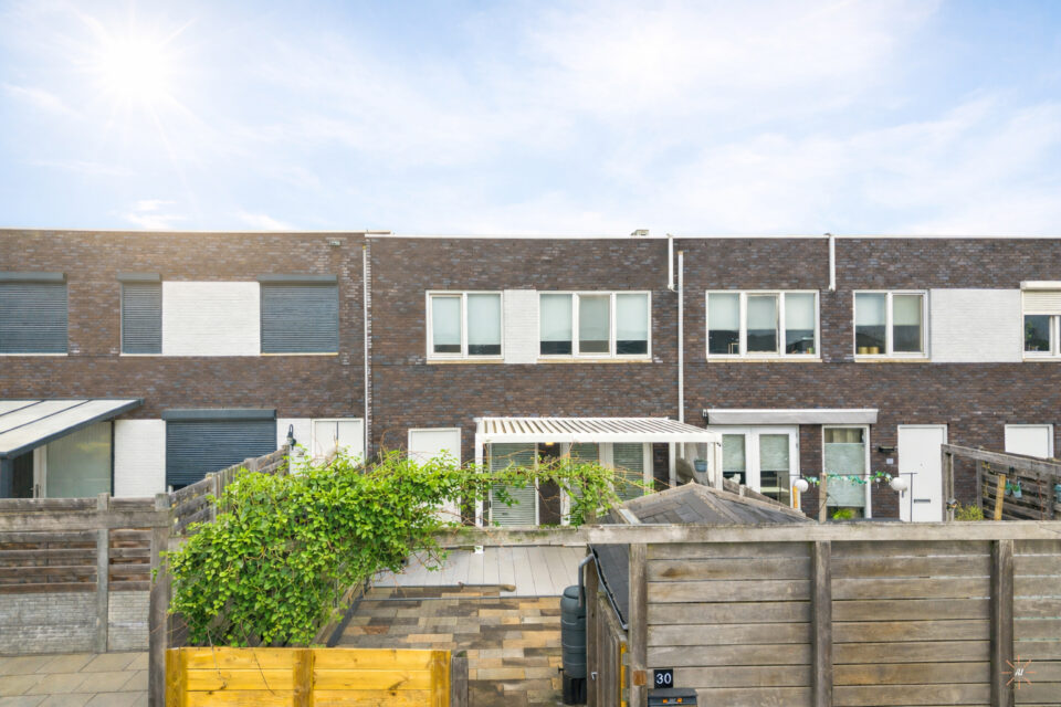 Via de voortuin bereik je de voordeur, wat zorgt voor een rustige en afgescheiden entree. De tuin is voorzien van een overkapping, waardoor je hier het hele jaar door beschut kunt genieten van het buitenleven. Ook is er een externe berging aanwezig, ideaal voor het stallen van fietsen en het opbergen van spullen.