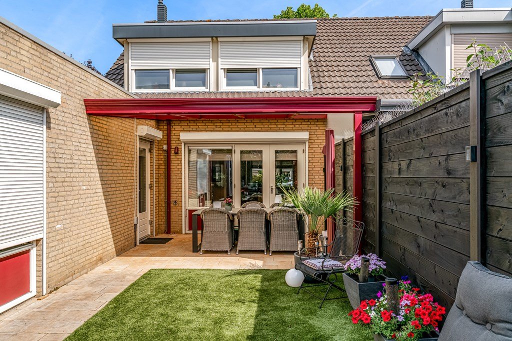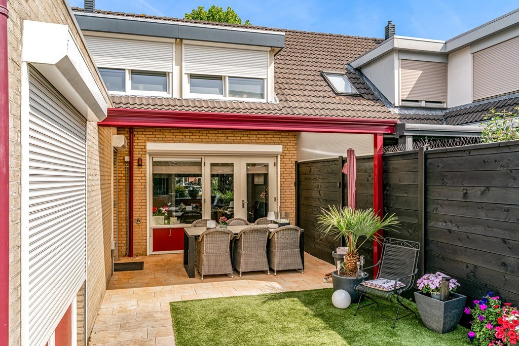 • Aangebouwde berging én overkapping in de tuin