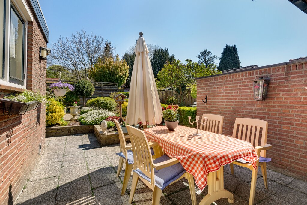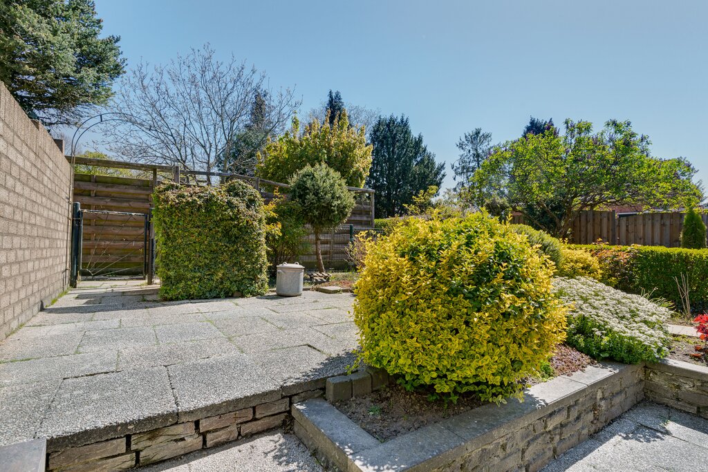 De achtertuin is onderhoudsvriendelijk met een terras en diverse beplanting. Het achterste gedeelte van de tuin is wat verhoogd. Tegen de woning is een berging gerealiseerd (ca. 3.98 * 1.96 m) welke vanuit de tuin bereikbaar is. De tuin is achterom bereikbaar.