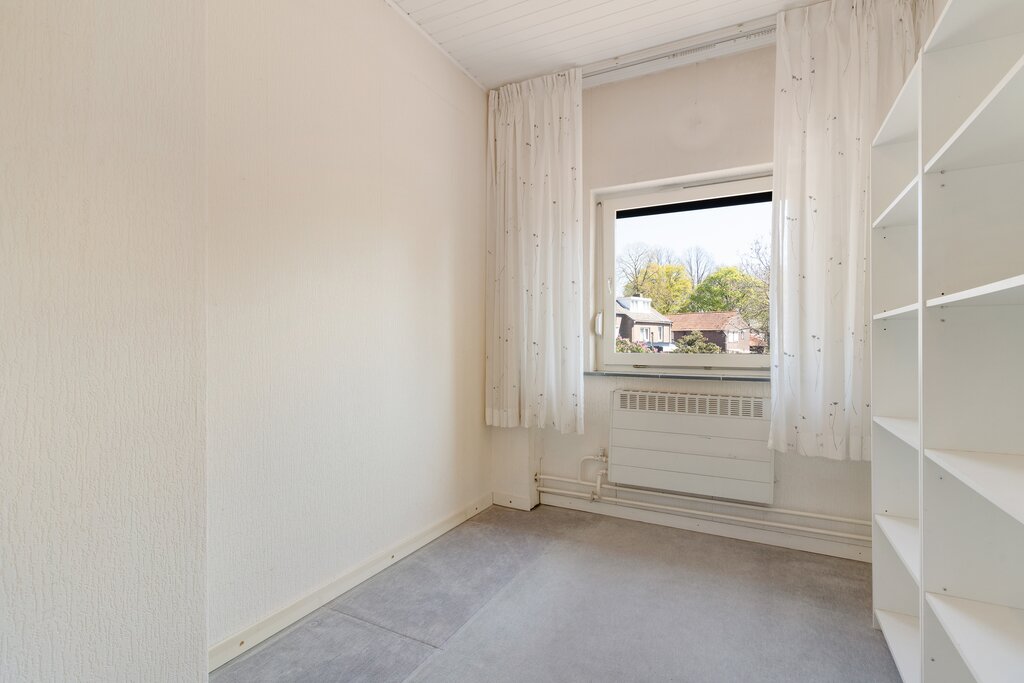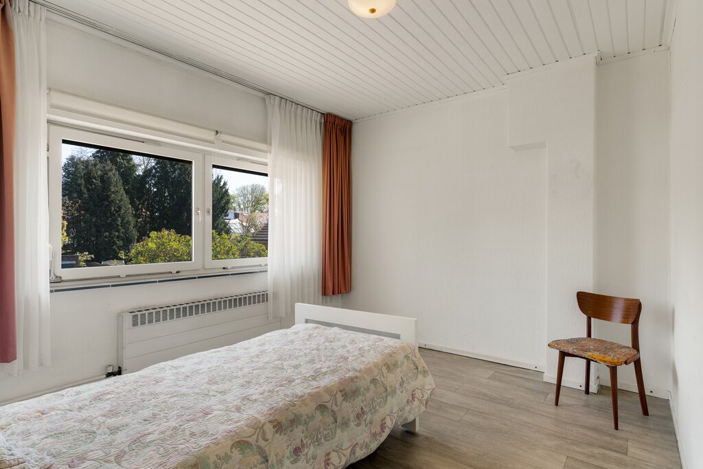 De overloop biedt toegang tot de badkamer en de drie slaapkamers. De badkamer (ca. 2.08 * 1.16 m) is geheel betegeld en voorzien van een douche en wastafel. De slaapkamers, I (ca. 3.60 * 2.87 m), II (ca. 3.60 * 2.98 m) en III (ca. 2.67* 2.08 m).