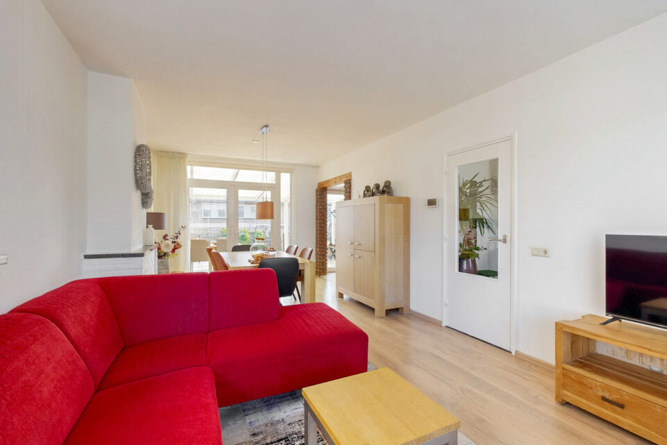 - Woonkamer met tuindeuren naar het overdekte terras en voorzien van een airco (2022), met functie koelen en verwarmen;