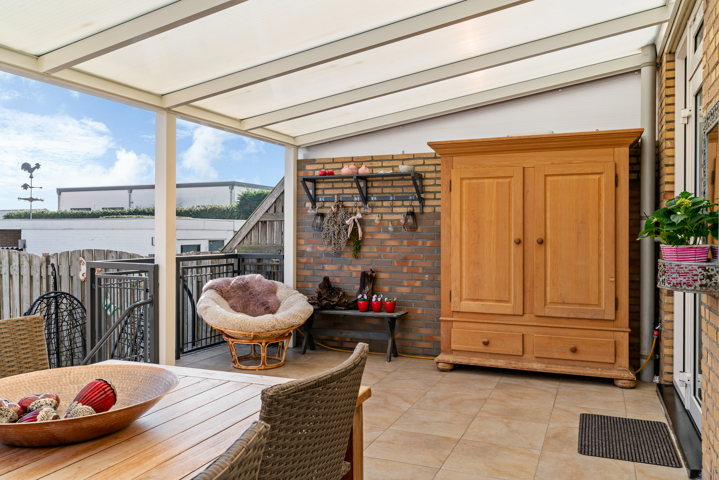 Vanuit de keuken heeft men tevens toegang tot het overdekte (betegeld) terras en de heerlijke tuin welke is gelegen op het zuid- oosten.