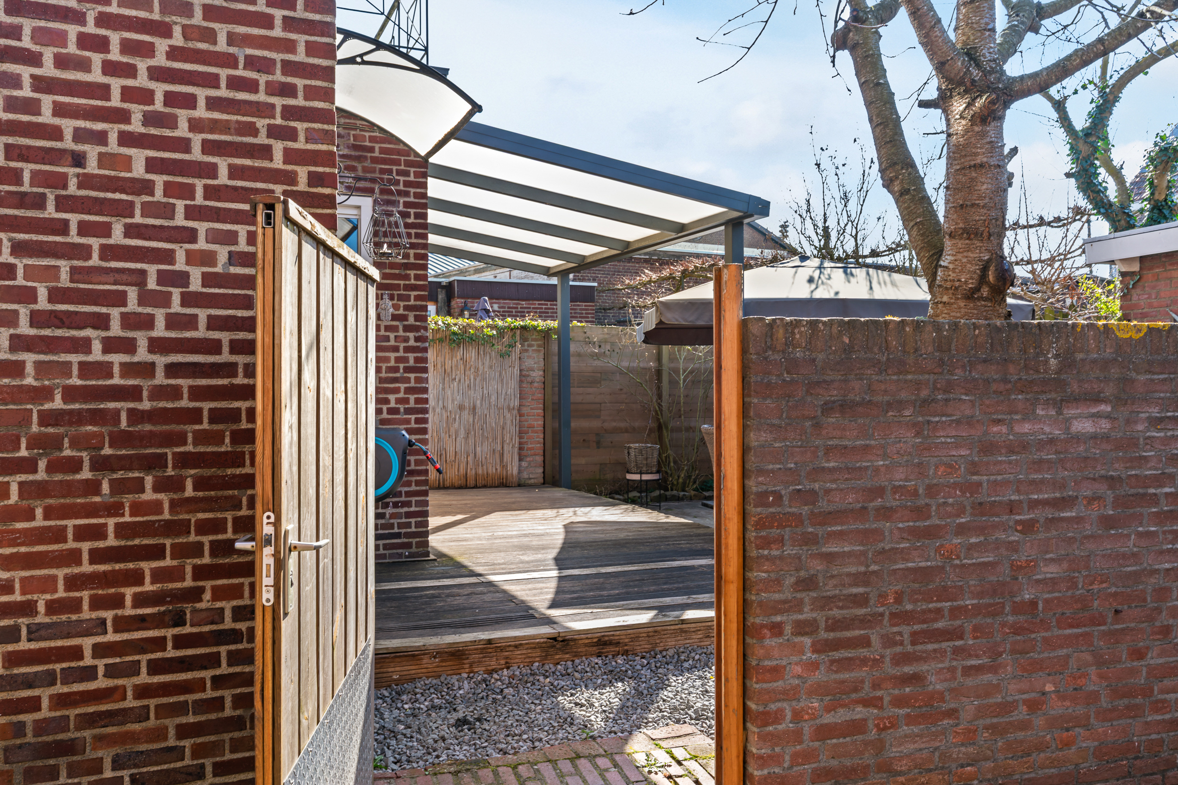 - sfeervolle onderhoudsvriendelijke tuin met tuinberging en overkapping;