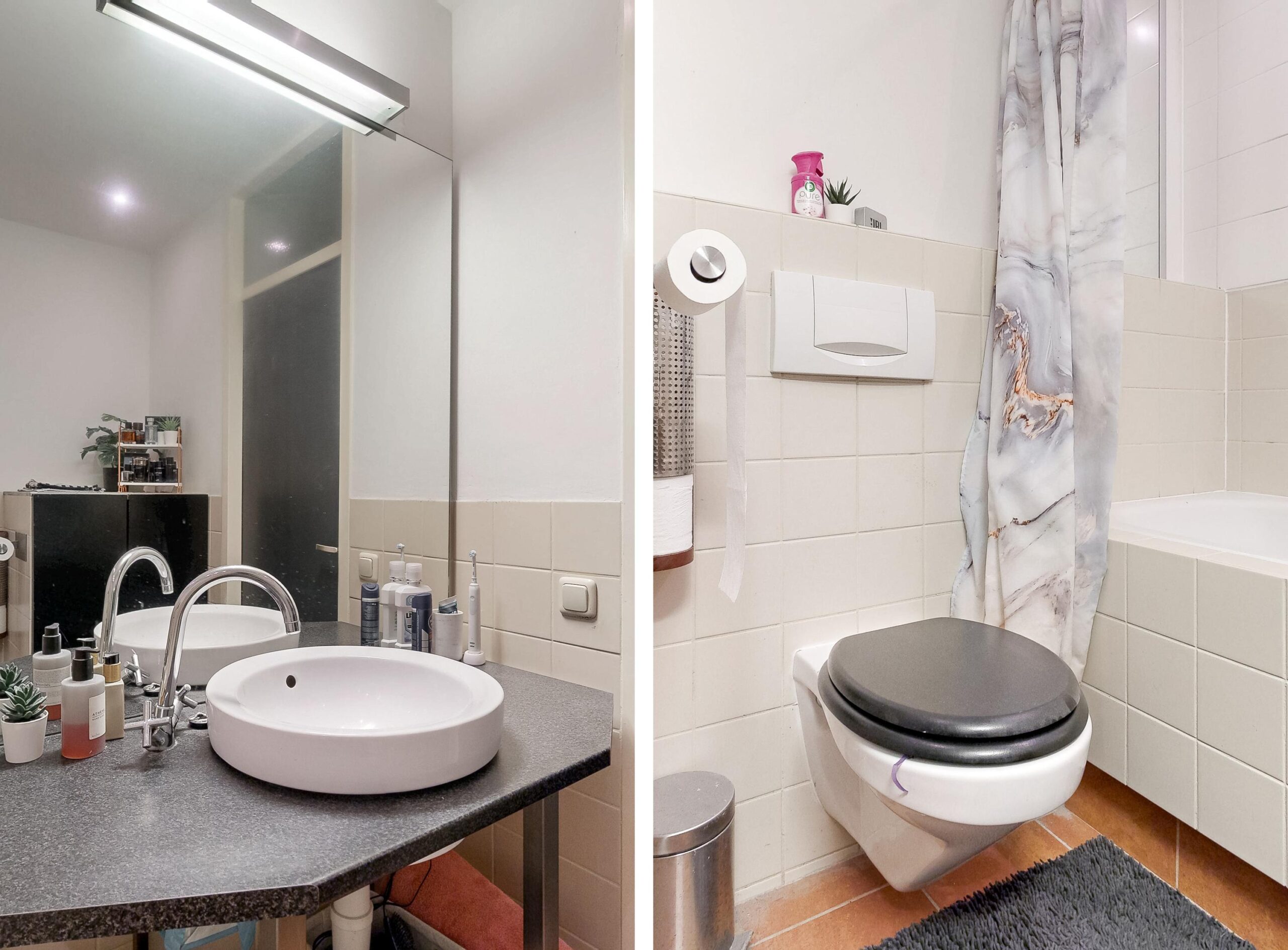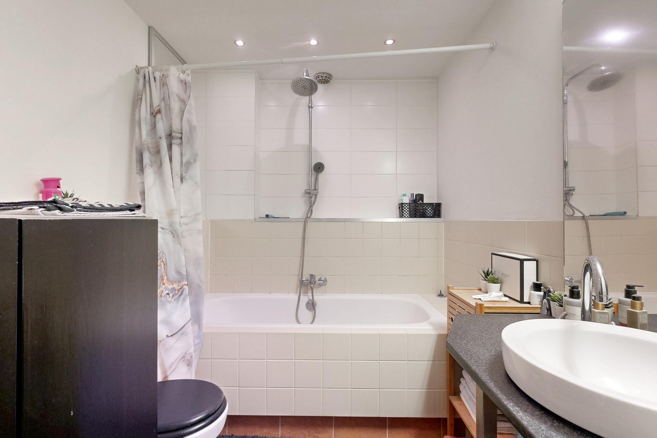 • Badkamer met douche/bad, toilet en wastafel