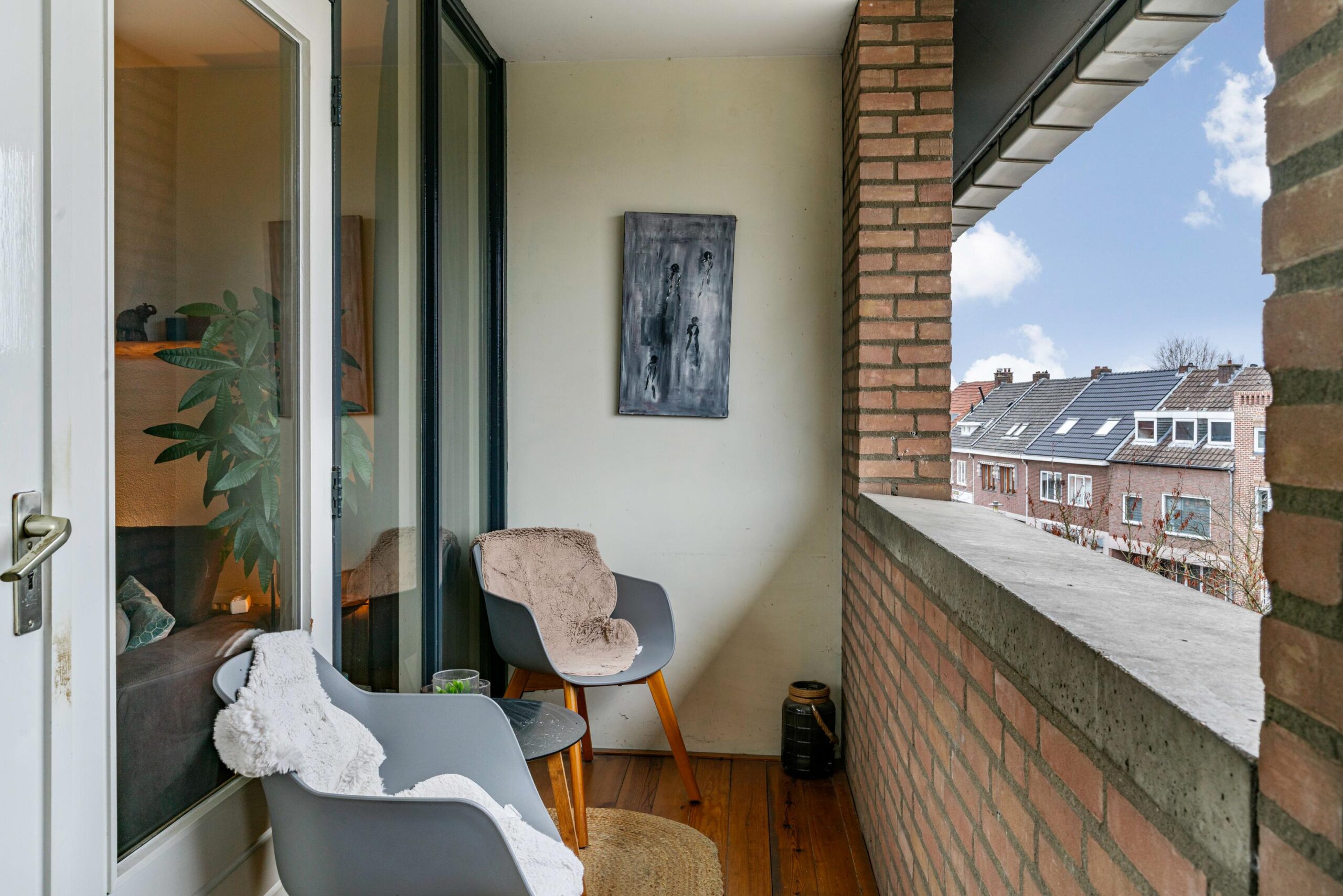 De inpandige loggia aan de voorzijde heeft een prachtig uitzicht op het Dorine Verschureplein, het hart van Elsloo. Met winkels, horeca gelegenheden en supermarkt binnen loopafstand.