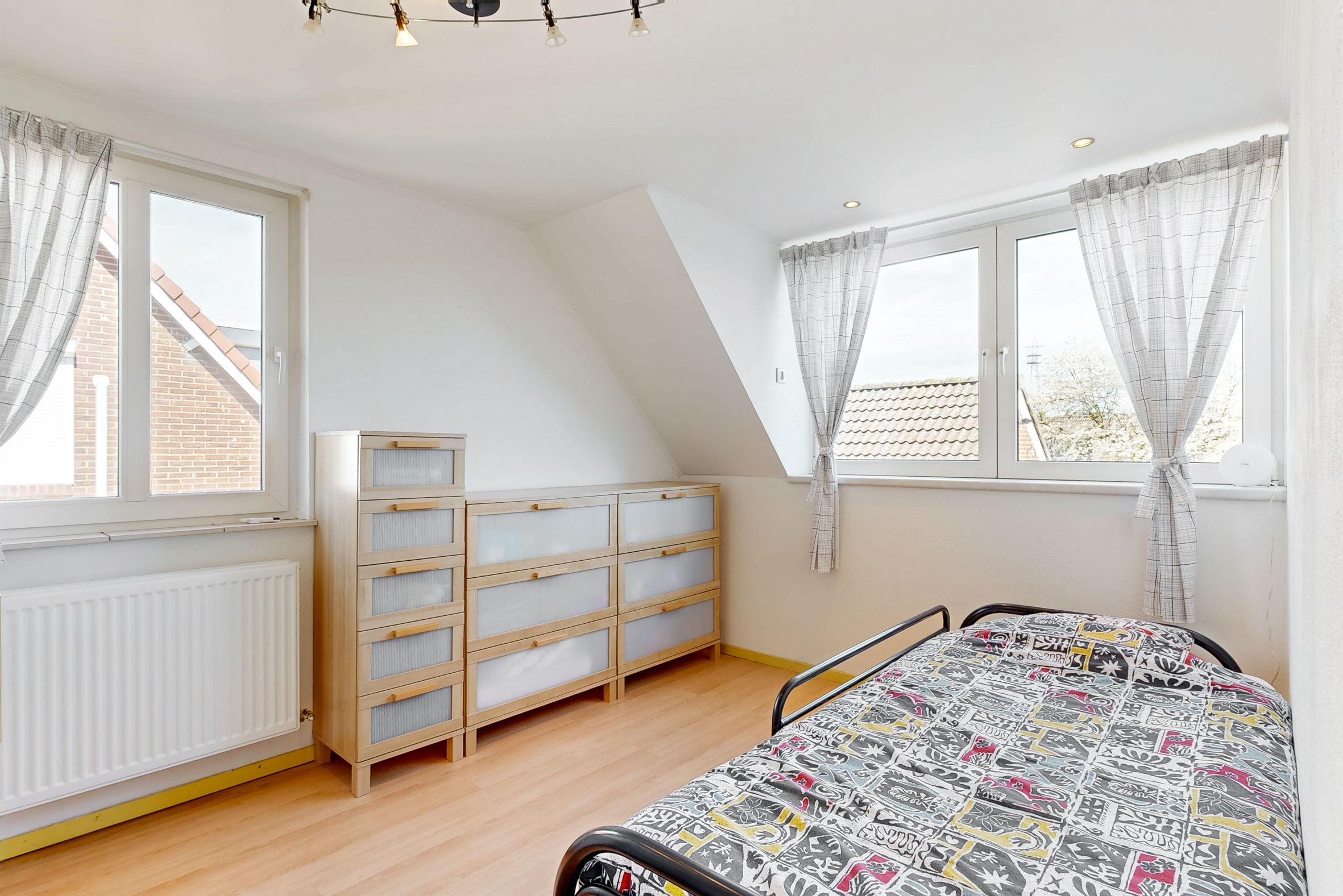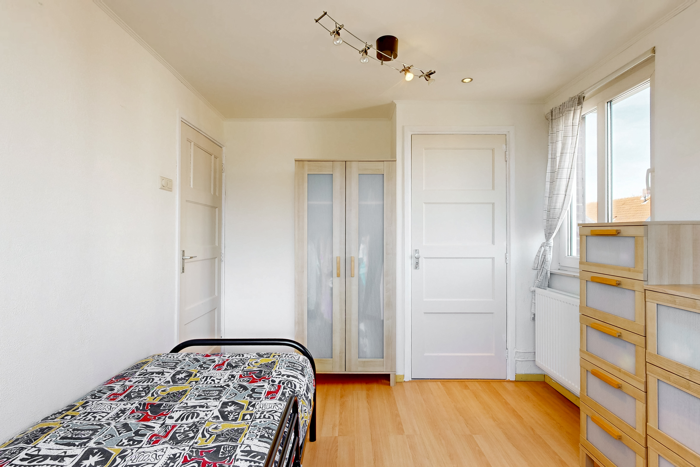 Overloop, 4 keurige sfeervolle slaapkamers voorzien van laminaatvloeren (en vaste muurkast), handige bergkast;